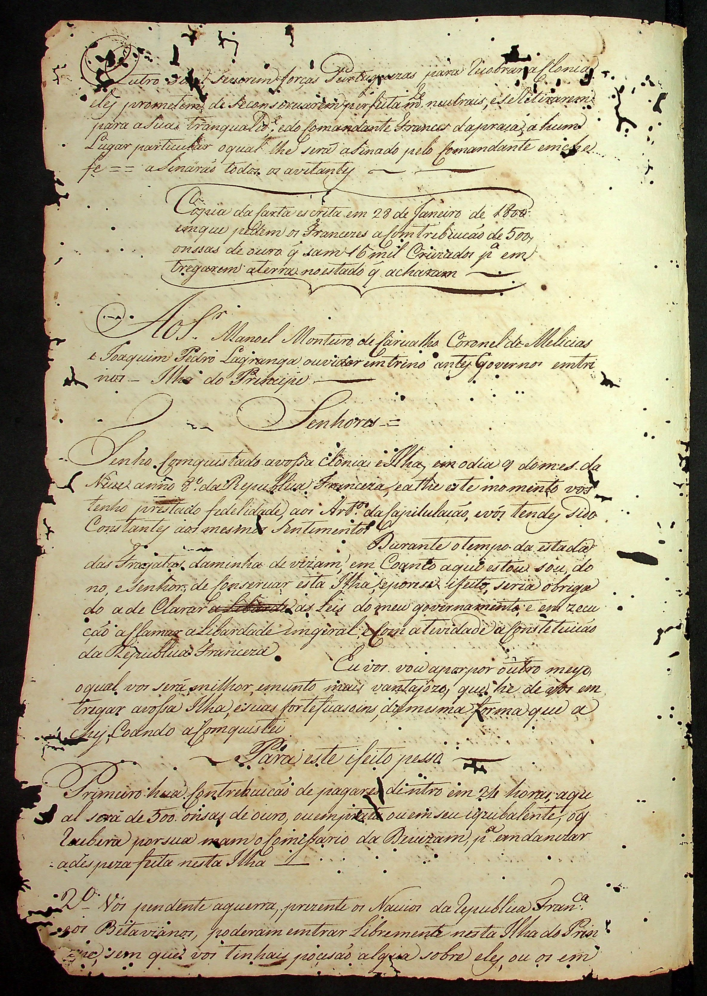 TERMO (cópia) de Citação feita ao [Governador] da Ilha do Príncipe para que entregue a [dita] Ilha ao Comandante da Divisão Francesa Landolphe.