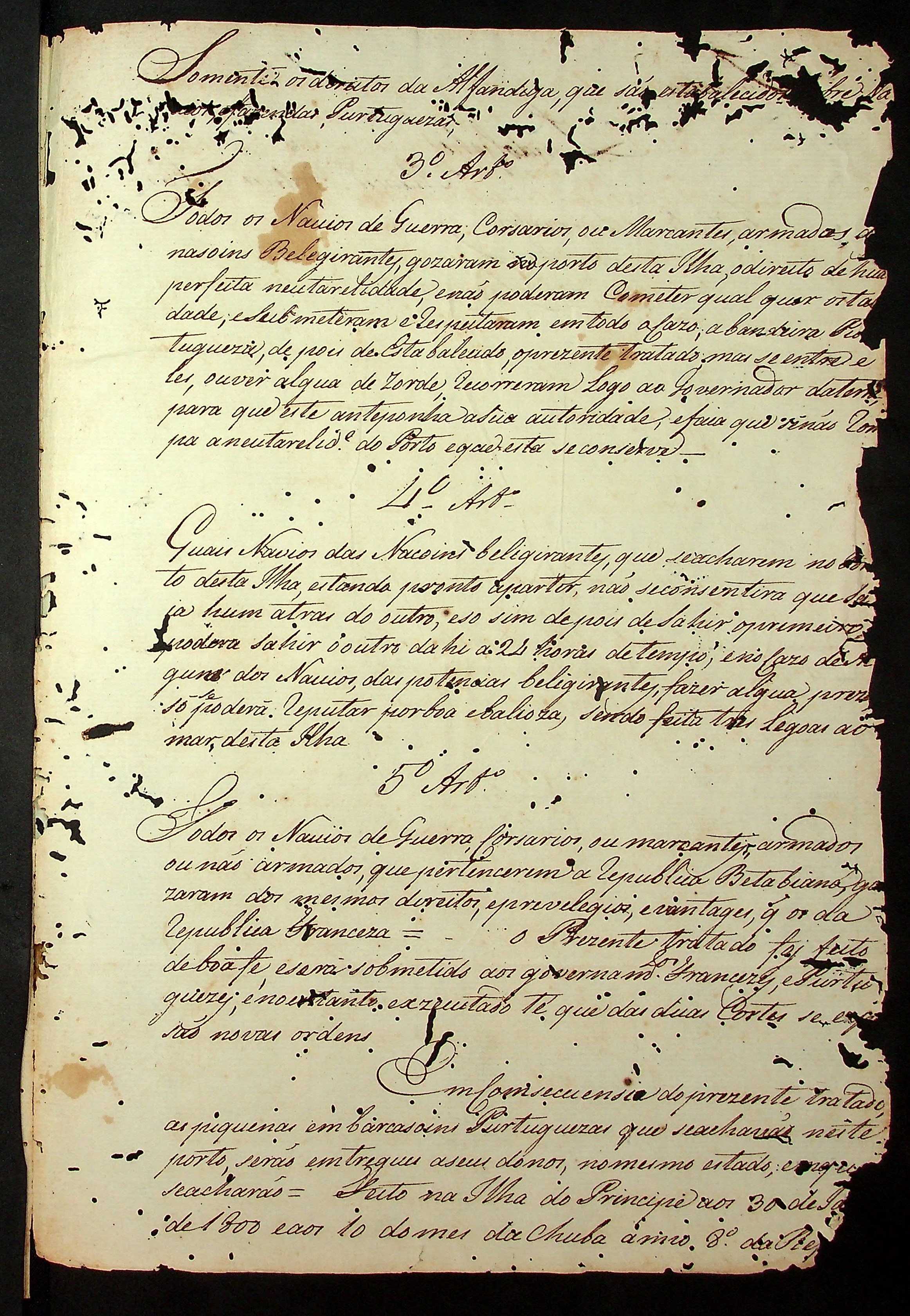 TERMO (cópia) de Citação feita ao [Governador] da Ilha do Príncipe para que entregue a [dita] Ilha ao Comandante da Divisão Francesa Landolphe.