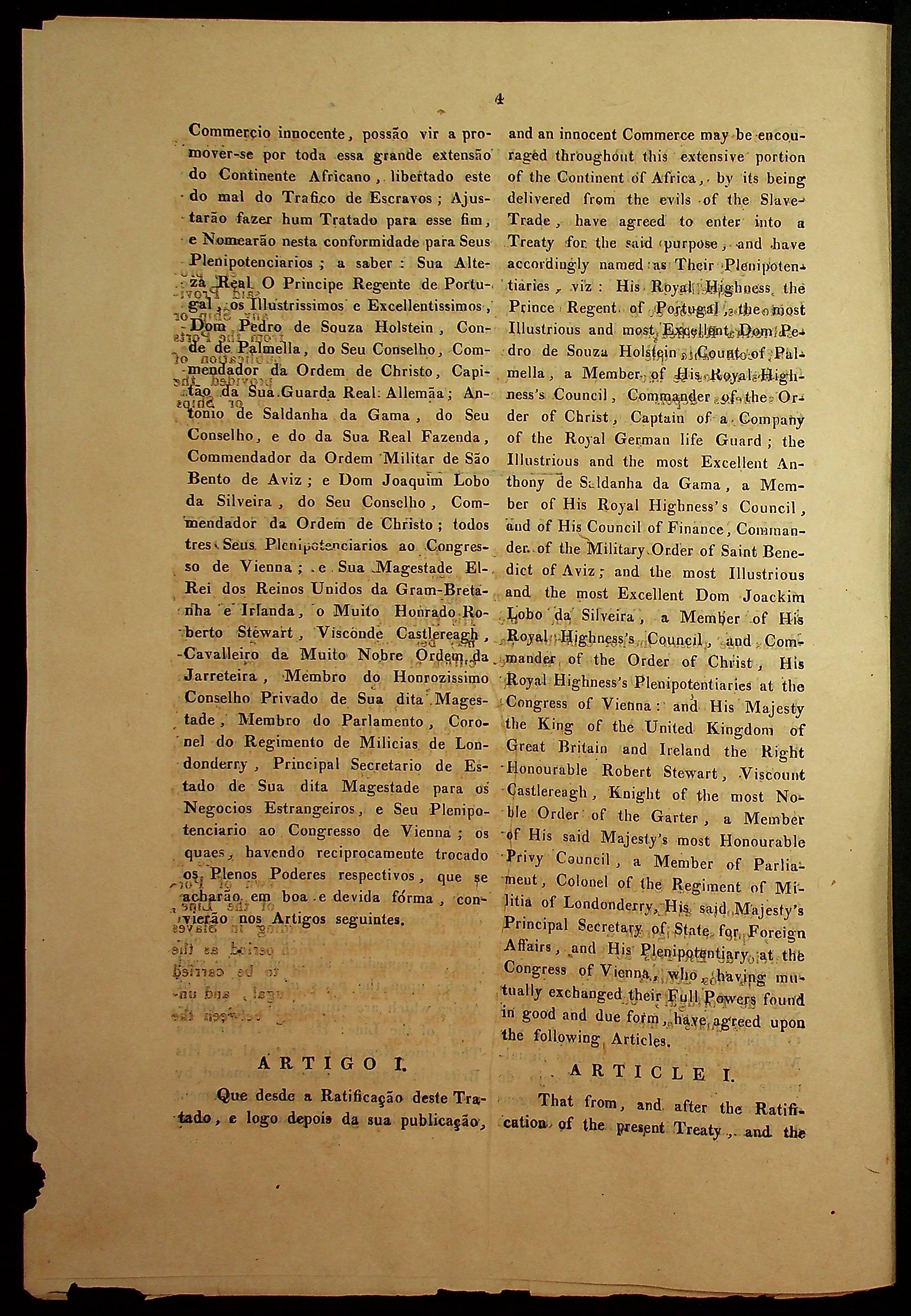 TRATADO da abolição do tráfico de escravos em todos os lugares da Costa de África ao Norte do Equador.
