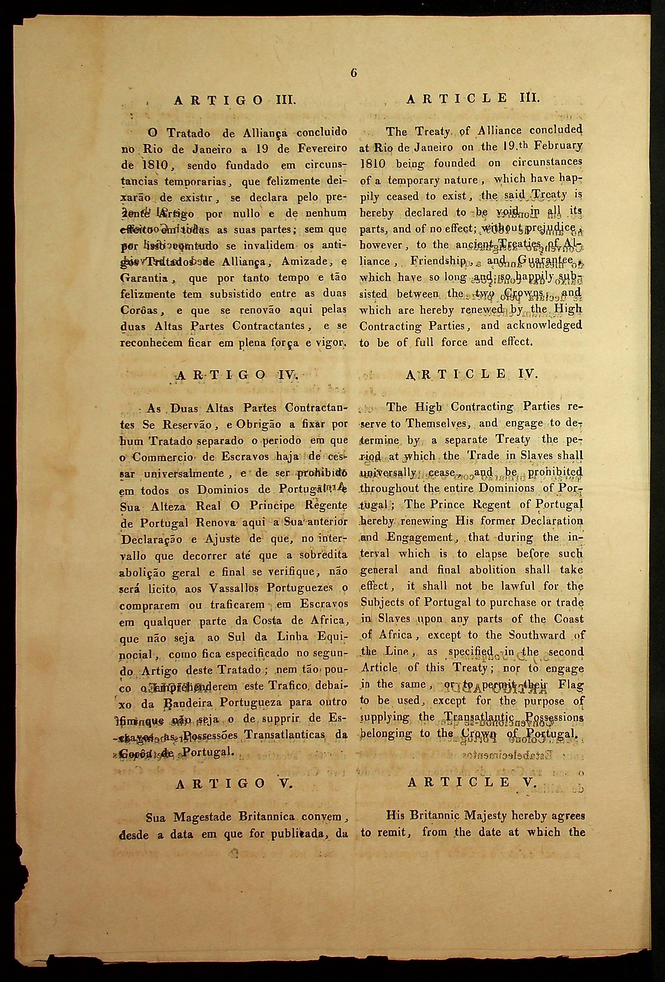 TRATADO da abolição do tráfico de escravos em todos os lugares da Costa de África ao Norte do Equador.